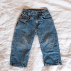 Classic and collectible. There vintage Levi’s 556 loose fit jeans are a rare toddler-sized find from the 1990s. Featuring the iconic red tab and crafted from 100% cotton denim, they offer the same timeless style and quality Levi’s is known for, scaled down for little ones.